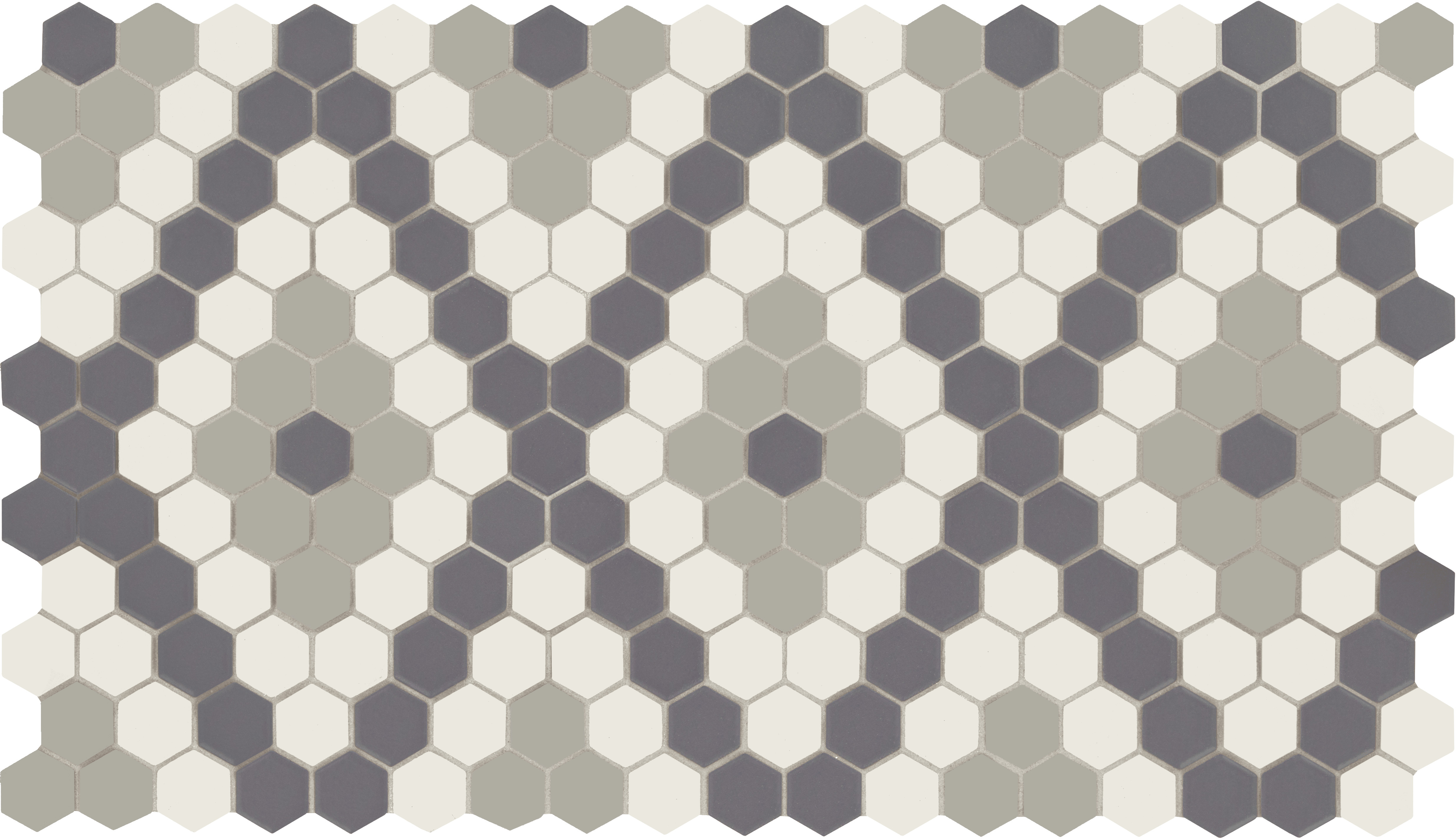 - Foundation Gradient Blend 1″ Diamond Hexagon Mosaic Matte