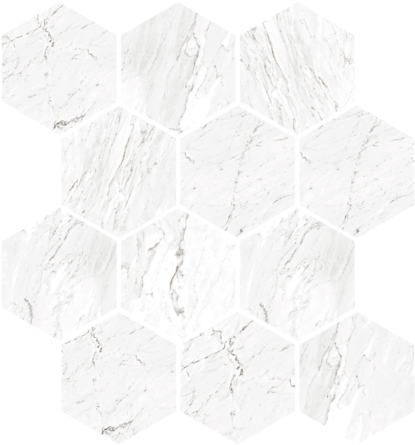 Tremaine White 9×11 Hexagon Mosaic Polished